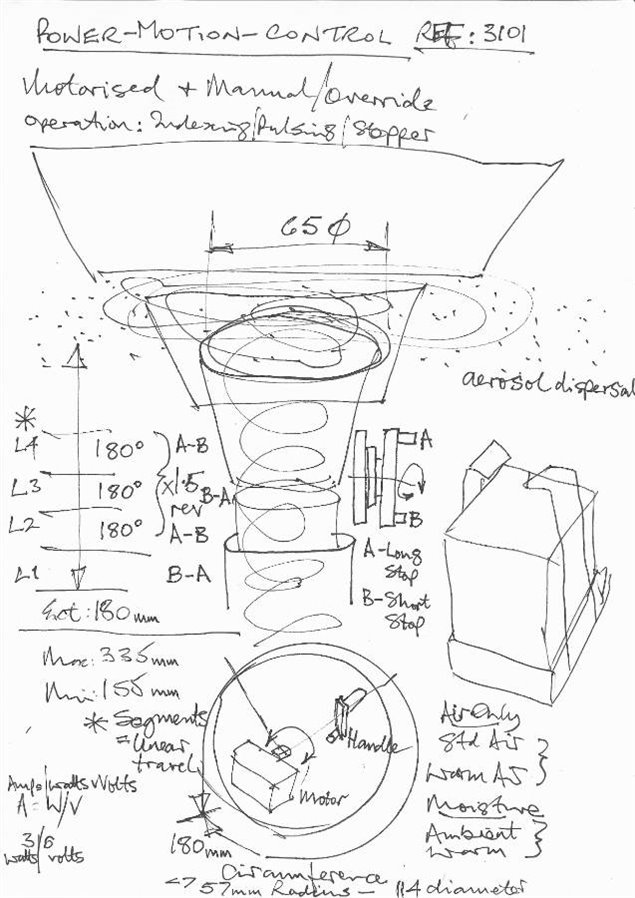 I have developed the basic principles of motion and control for one of the most important aspects of my design proposals, the ‘GIZZMOTO’ special pump with a telescopic outlet/extension and a distribution head attachment.