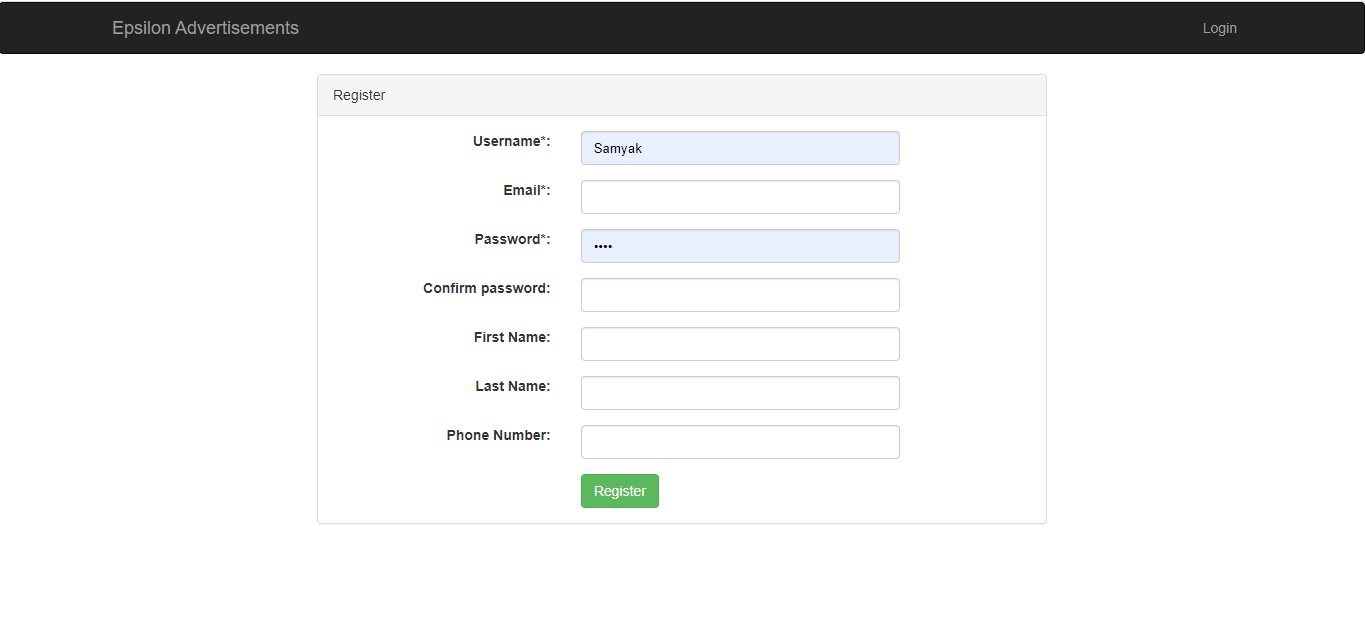 Here I have created the User Interface/Website with name as "Epsilon Advertisements".