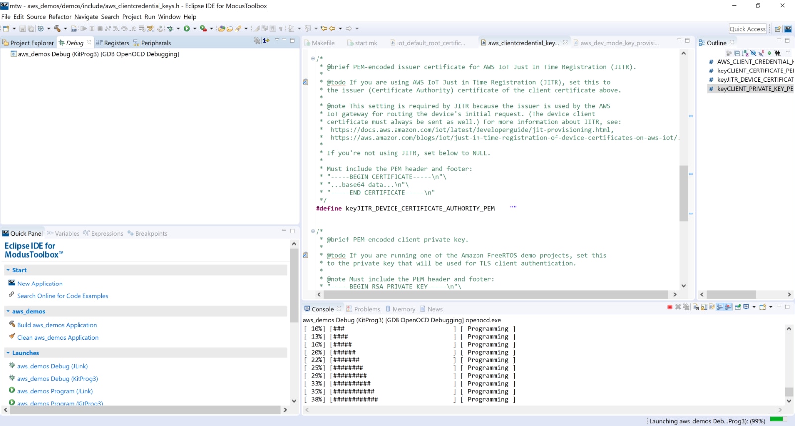 Then, we build and download the code, by clicking aws_demos Program (KitProg3) in the quick panel