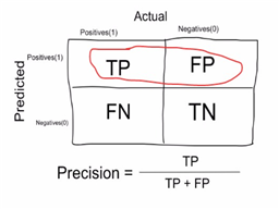Precision | Proportion of true positives over total number of samples. Higher precision leads to less false positives (i.e. model predicts 1 when it should have been 0) | sklearn.metrics.precision.score() tf.keras.metrics.Precision() |