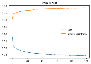 # build the model model.compile(loss=tf.keras.losses.binary_crossentropy, optimizer=tf.keras.optimizers.Adam(), metrics=['binary_accuracy'] );