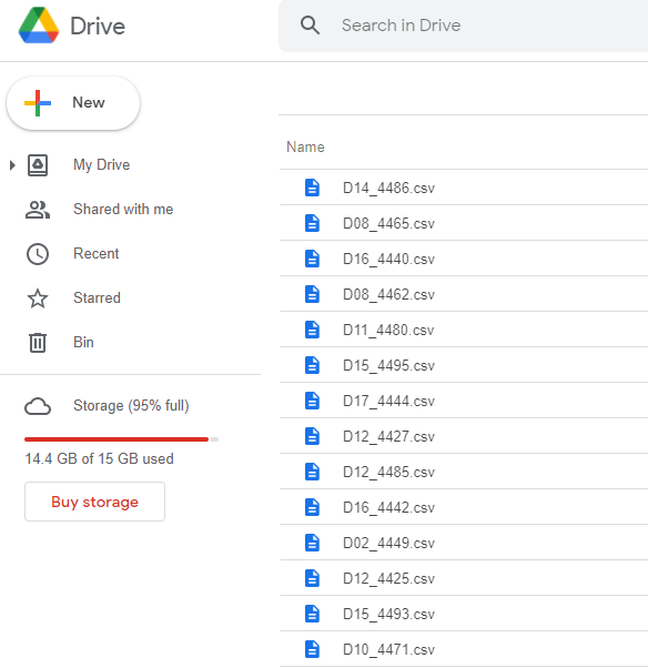 Files generated by the application have been uploaded to my Google Drive in order to be loaded by the Python code I will write in TensorFlow