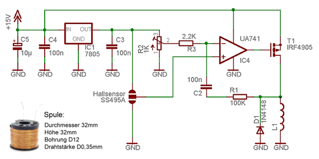 I'm a newbie in electronics and Trying to understand and build this circuit. would somebody tell me the rule of R1 & C2 in this circuit and their magnitude effect on the controlling of the process?why didn't feedback start just after the output of opamp?How could I find the transfer function between the voltage output of Hall effect sensor and the voltage output of MOSFET drain?