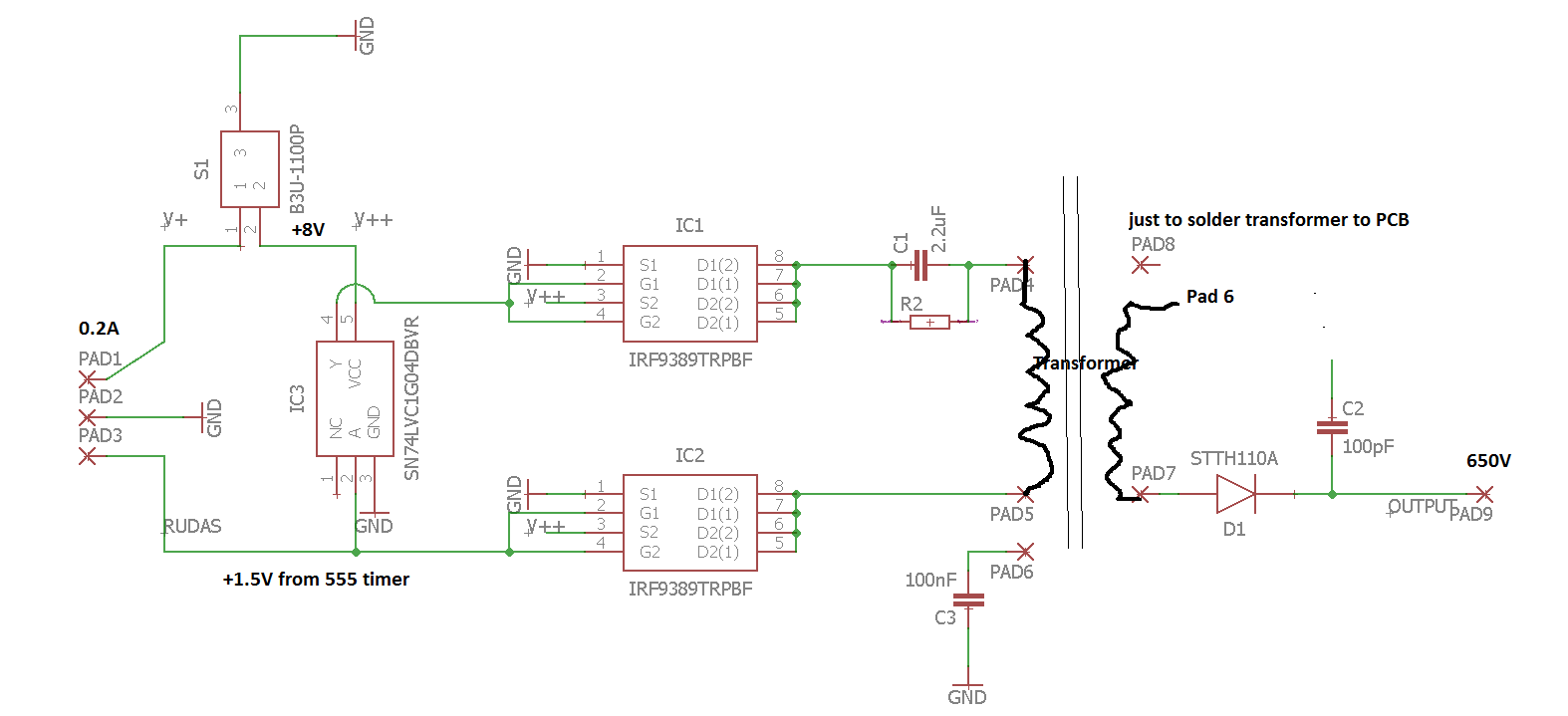 Part of the circuit (circuit for 555 timer is pretty simple, works in abstable state - not showed):
