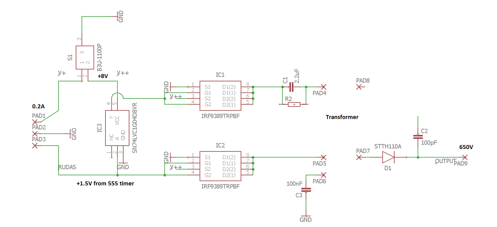 I am controlling signal using two dual channel mofsets and supplying them to the transformer ( 100 voltage multiplication).