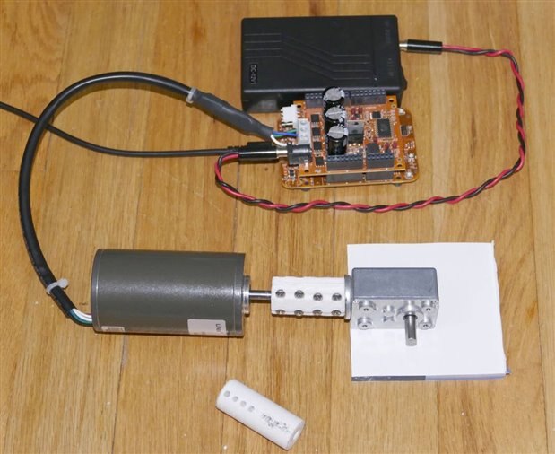 I explored a lot of options as this can be an expensive aspect of the system. I procured several adpters, flex-couplers and gearboxes, to try to cobble a workable combination together, but every component in the system has its own set of problems, each of which requires time and usually money to resolve. The picture below shows a gearbox I obtained by butchering a perfectly good gearmotor, but of course the gearbox driveshaft is a different diameter from the motor driveshaft, so an adapter is needed. The commercial coupler I ordered has not arrived and might not arrive in time for this project, so I have been attempting to make a suitable coupler. The unconnected cyclindrical coupler in the picture caused huge vibration because it could not maintain accurate axial alignment. The clamping coupler shown connected, was a little better, but still not good enough. I hind sight, butchering the gearmotor the way I did was not the best solution. It left only a single bushing in the gearbox to control the driveshaft. And of course I bent the driveshaft a bit in the process - very difficult to straighten accurately.