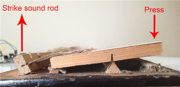 A cross-section of the existing toy piano key mechanism, annotating the way it was designed to work.