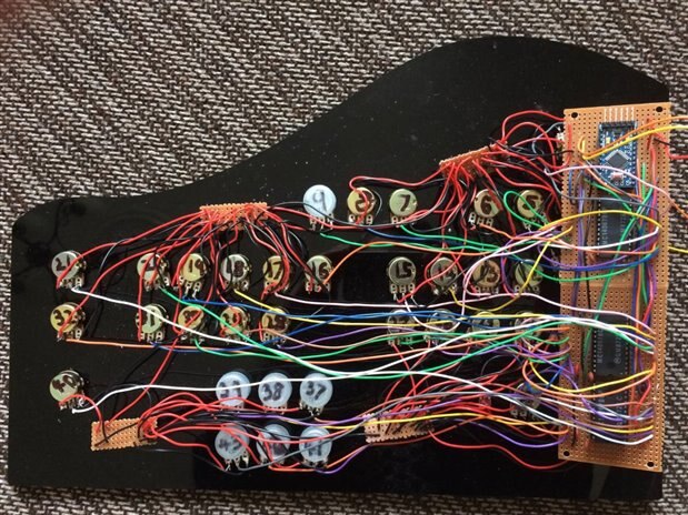 It's not my neatest or prettiest wiring, though unfortunately if attempting to develop a circuit that contains 42 potentiometers on stripboard instead of a PCB there are going to be lots of wires.