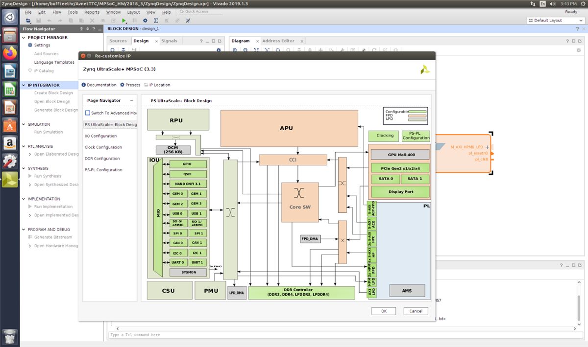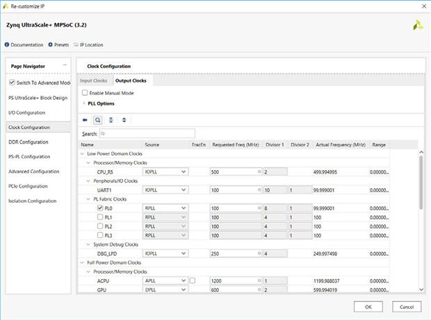 • Configure Memory and Clocks for the Zynq MPSoC PS