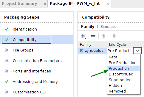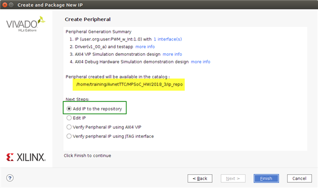 After creation the IP was then added to the repository.