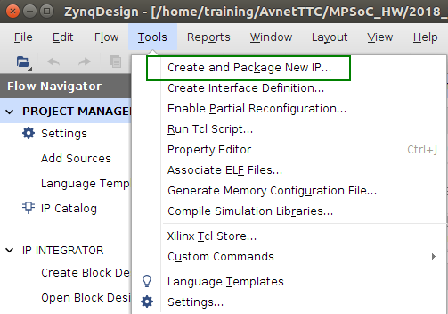 In the Menu there is an Option called Tools. There is a selection to Create and Package New IP