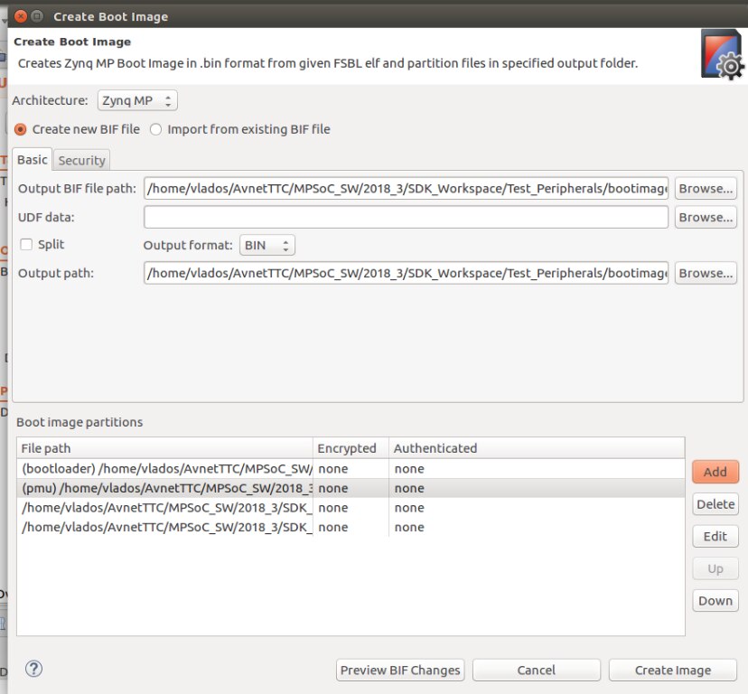 This way two output files are generated: BOOT.bin image file and a .bif file (Boot Image Format) which lists the partitions and the corresponding attributes.