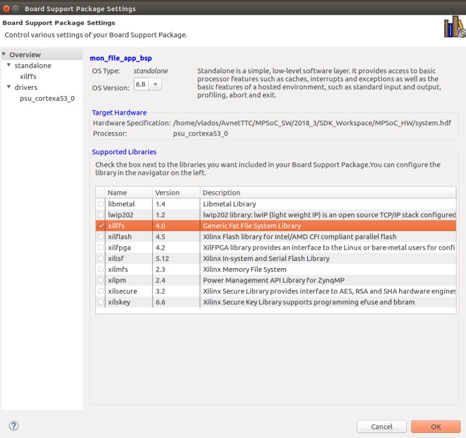 - How to enable one of the Xilinx libraries within your standalone BSP