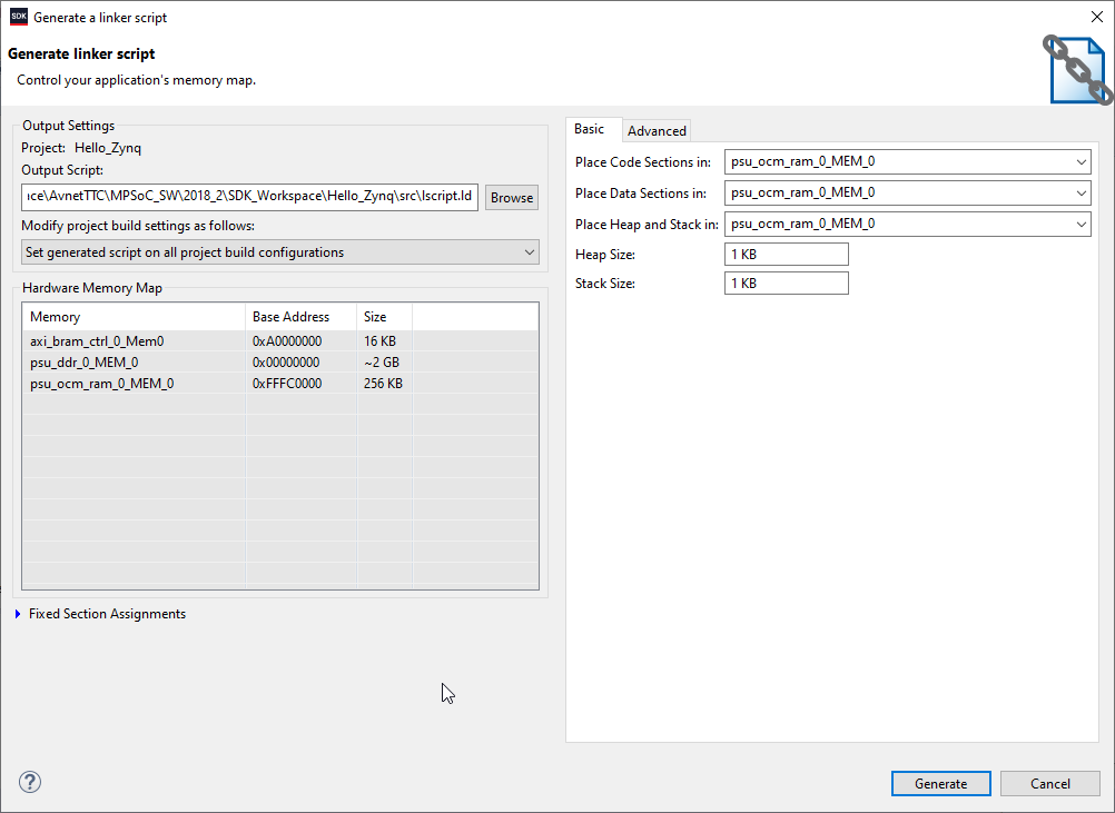 - Looked at the linker script - Vivado parses the text file and displays the parameters in a nicer looking page.