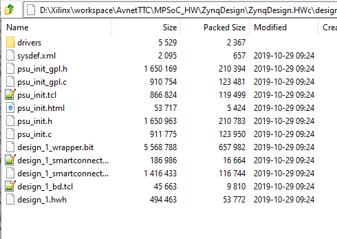 - Explored the contents of the .hdf file that was exported from Vivado. In essence, it's a .zip file, so it can be opened with an archive manager & contains a bunch of files.