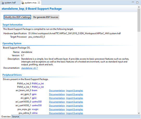 - The BSP viewer in Vivado automatically detects when a certain driver has documentation & examples, and displays a hyperlink.