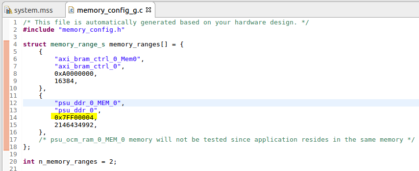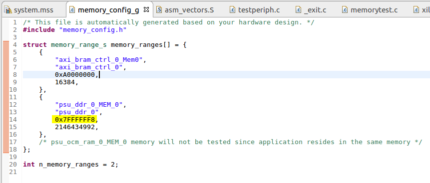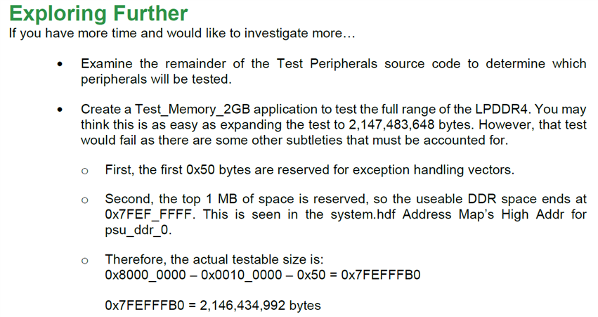 Given the factor that it may take a long time to test 2GB DDR RAM to see the failure, I only test 1MB like the Test_Memory application does, but I moved the start offset much higher (as highlighted below in the following screenshot) and make the test to reach into the reserved top 1MB. Thus I expect the test fail and the failure was verified in the next lab - HW Lab 5.