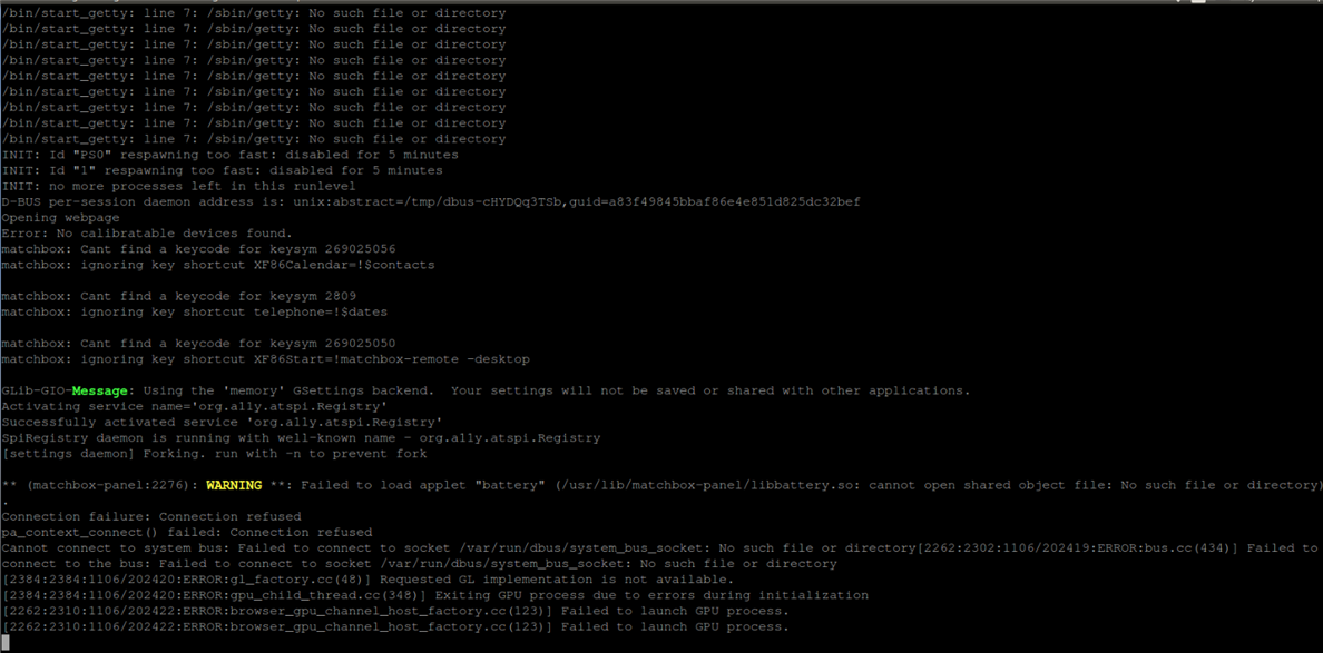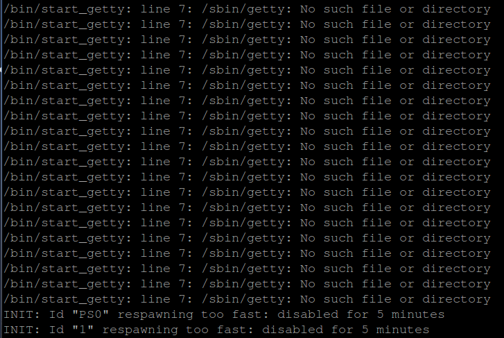 Then the console spit out the following block of messages again and again. Based on the message, it seems my built image doesn't contain getty utility.