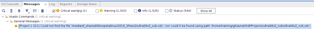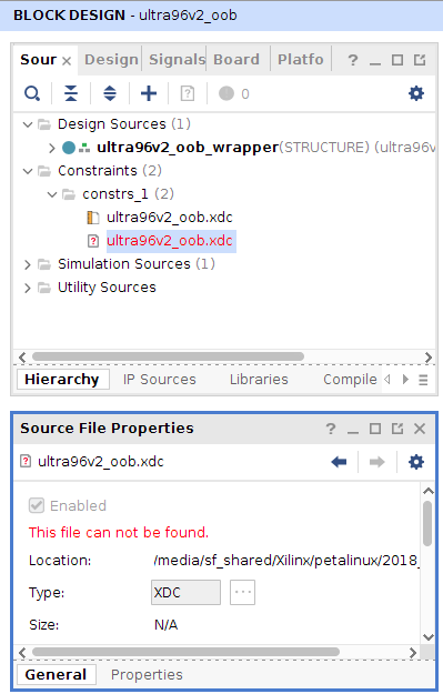 Using Vivado to open the block design in the provided hardware project, it gave a critical warning message. The lab instruction says "Please ignore any warnings when opening the design". It seems the warning can be easily eliminated by removing the redundant constrain file shown below. Anyhow, the lab doesn't require regenerate the HDF file, so it doesn't matter fix the critical warning or not.