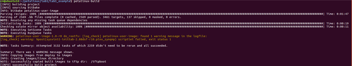 WARNING: petalinux-user-image-1.0-r0 do_rootfs: [log_check] petalinux-user-image: found 1 warning message in the logfile:
