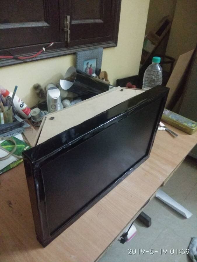Initially I was planning to make the enclosure using plywood board of half inch thickness but the MDF seemed to be a great alternative for this and it all did turned out well. So I also made a lot of changes such as earlier I was planning to give buttons for user on the side of the screen however now I am planning to give an IR remote control. Also the bessel is a bit more than expected but the overall look is not that bad.