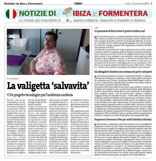 Meditech short presentation article on the Ibiza newspaper, Italian edition this morning.