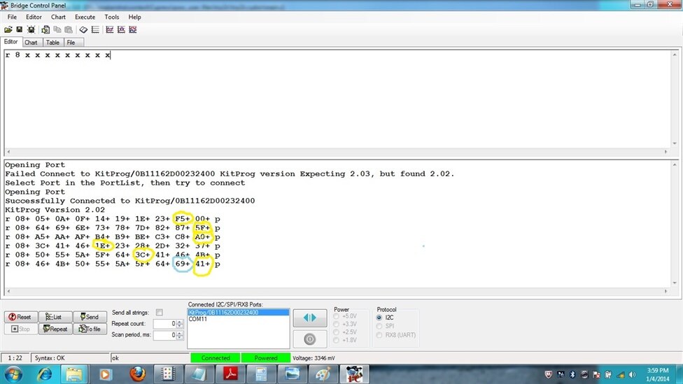 Meanwhile, I am writing the PID in software. For code testing purpose, the variable values need to be communicated to host. I am trying I2C. I am implementing this for the first time. Gagan Luthra's video was very helpful. I have learnt writing to and reading from the buffers. For the computed variables, I wrote a code that sends a variable "num" that keeps on incrementing by 5. When it exceeds 0x0F9 it resets. Strangely, at some points I am getting data that I could not explain. I marked those with yellow. The blue mark indicates a correct data that was wrong in the previous read.