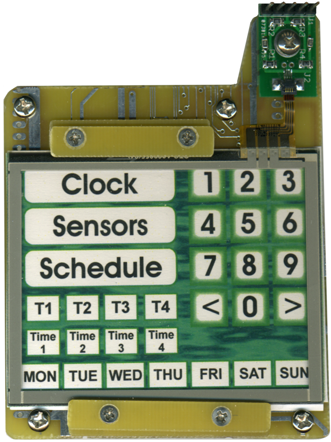 This screen is being used to implement a multi-button keypad with fixed layout and fixed function to provide a more intuitive, less confusing interface than a typical thermostat which might have just 3 context-sensitive multifunction buttons, controlling a multilevel menu structure. The screen is not placed over the display, so your fingers don't obscure or smudge the display and this allows the keypad to have a nice colourful background.
