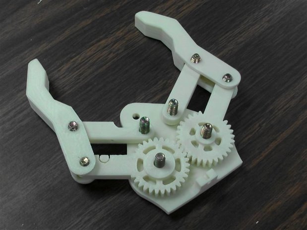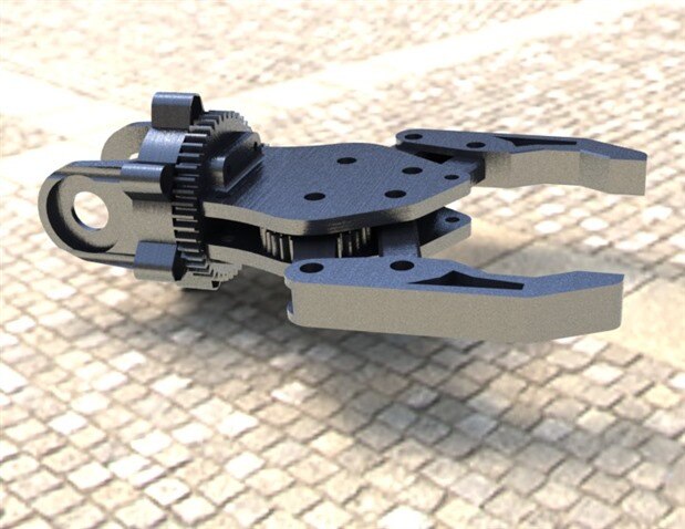 The gears inside the arm. This is a common design, so I can't take credit for the idea, just this implementation of it. The grips are made to fit the curvature of a coffee grinder bucket, since that is a bit larger than a coffee cup.
