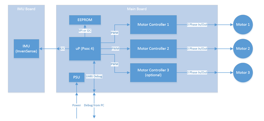 The EEPROM is added to give the device some non-volatile memory to store calibration data and user settings if needed. I’m anticipating this need because we might have more complex control schemes in the future and some non-volatile memory is always handy. The size and electrical interface has not been picked yet.