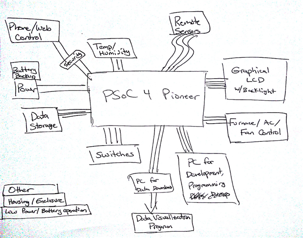 The UnCoStat (Unnecessarily Complex Thermostat) design process has officially kicked off! I received my PSoC4 Pioneer kit yesterday and ordered a bunch of parts today.
