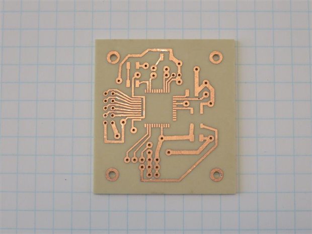 Here is a close up of a the milled PSoC 4 controller board. It is very simple as was made to test the limitations of the Milling process.