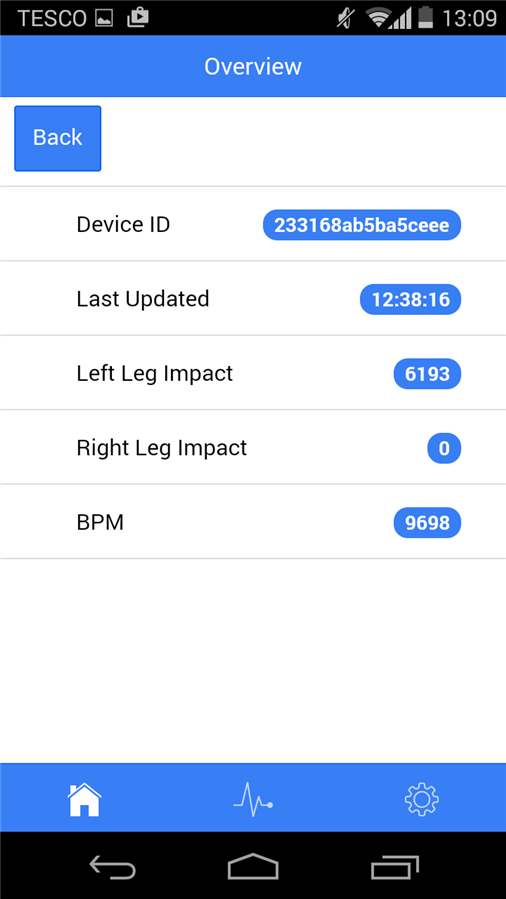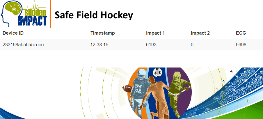 The Uniform Node (Electric Imp) contacts Processdata.php over HTTP, transmitting data in POST headers. The fields transmitted by the Node are Device, Timestamp, Impact1, Impact2, ECG. More fields will be added including Temp.