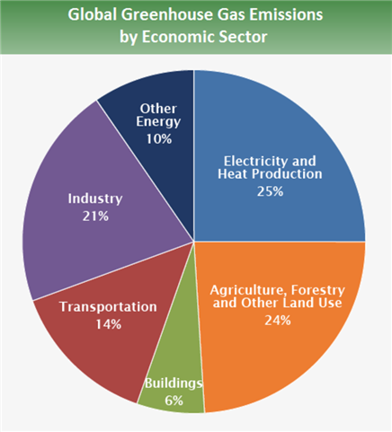 A 2015 graph produced by the IPCC (Intergovernmental Panel on Climate Change) shows what economic sectors worldwide produces the most GHGs, with industry, power production, and agriculture, being the top offenders. (Image credit: IPCC via the EPA)