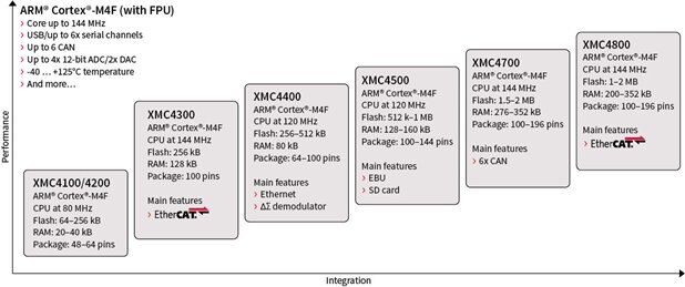 XMC is one of core MCU line by Infineon, this is for general purpose and others for automobile and TLE series for IGBT control. ARM-M0 and Arm-M4 core are covered. As follows,