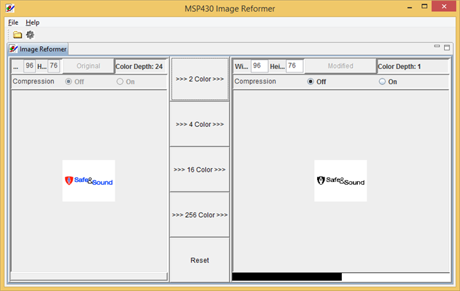As an example, I downloaded the Element14 Safe & Sound log, and using MS Paint, I made some minor changes and then created a .bmp. file to be used with Image Reformer.