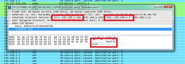 I decided I would make a totally original Hello Nick program (it is nothing like a Hello World program) it sends the string "hello nick" to the Acess Point once every second. I used Wireshark to check out what was going on on my WIFI network to make sure everything was working, the boring looking screenshot bellow was actually the highlight of my day (is that sad?).. As you can see, the CC3000 connected to my FRAM board (192.168.1.104) is sending the message "hello nick" to my wireless Access Point (192.168.1.2), wahoo!