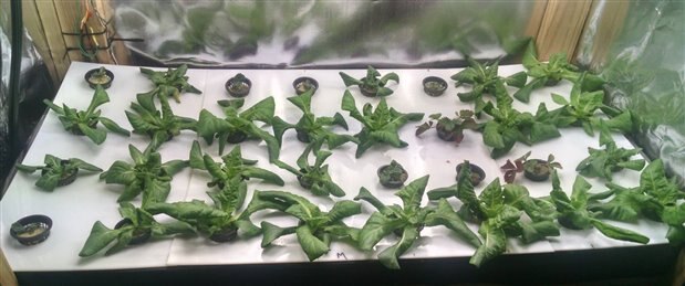 The result of this problem was that 7 out of 32 plants got so little water that they either died or had stunted growth. These plants we removed and/or trimmed, and I readjusted the sprayer orientation and schedule. The sprayers are now on for 10 minutes and off for 20. I also replaced three dead lettuces with strawberry plants from the garden which is now closed for the winter. I want to experiment with indoor strawberries because I miss them so much in the winter and you can really get nothing comparable in the store to homegrown strawberries.
