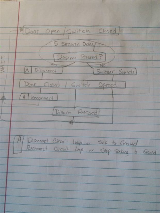 What is the proper approach for adding a disarm button to this circuit, so that the buzzer doesn't sound until the next time the button is released?