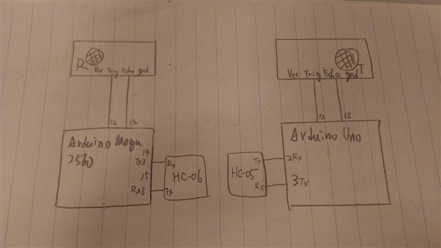 The big problem is the receiver and the sender need to be synchronized, they need to send 10us to trig pin individually at the same time to avoid wrong distance measurement,so Ben use xbee(15:42) to make Wireless transmission,when receiver send 10 pulse to trig pin, it immediately send the signal through xbee to tell the sender send 10us pulse to sender's trig pin,too.