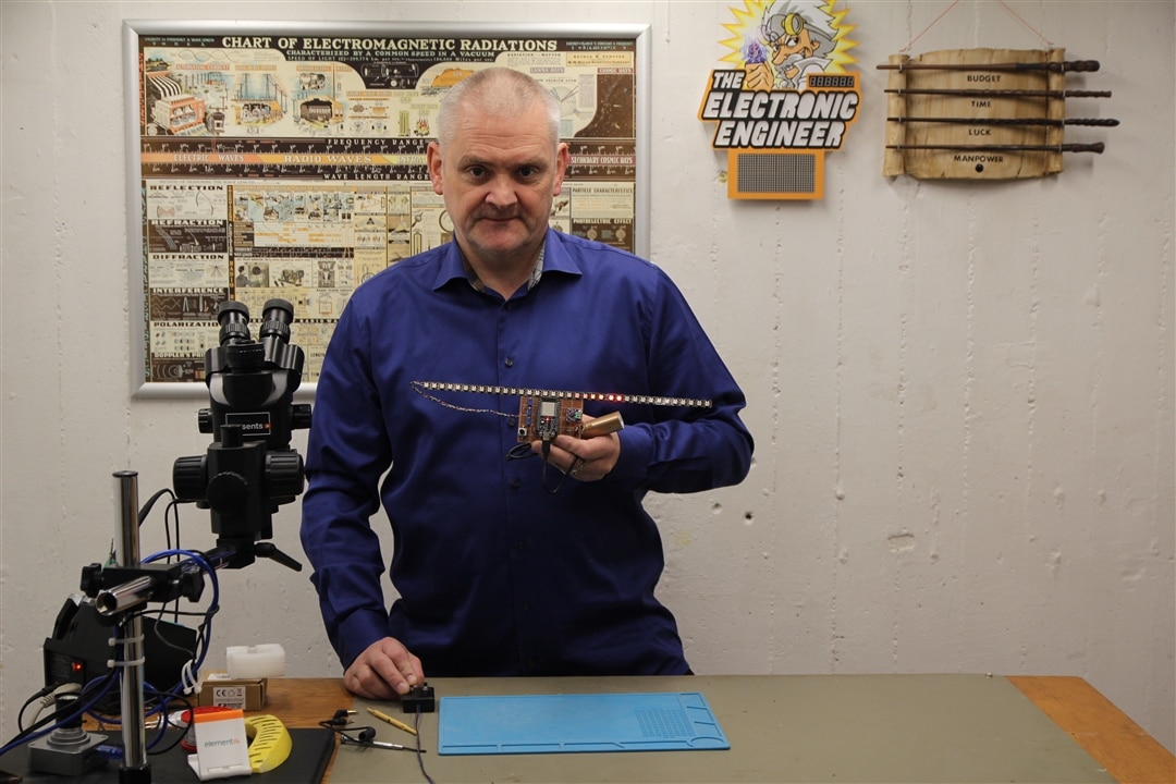 Join Mark as he builds a customisable Larson scanner using an ESP32, complete with synchronised Cylon-inspired sound effects. The project supports 12 to 50 WS2812 LEDs and uses four potentiometers to adjust brightness, speed, tail length, and LED count. Sound is driven by an I2S audio board and a surface-mounted speaker. It’s all powered via USB and programmed easily through a browser—no Arduino IDE needed. Perfect for cosplay, props, or unique lighting effects
