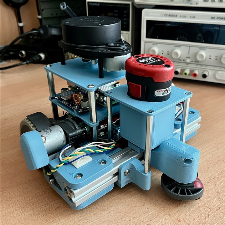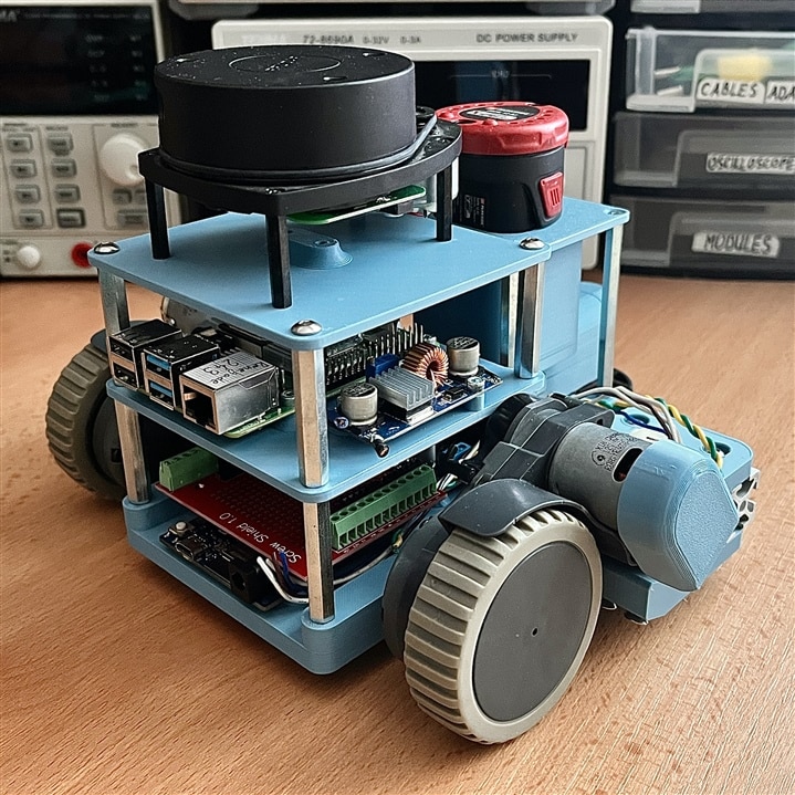 For the robot Milos wanted to build, he only needed the drive motors and the small swivel wheel. His idea for this project was to make a robot that resembles the popular turtlebot3 platform, that is used all over the world for teaching robotics. Another great thing about these motors is that because the vacuum robots need to keep their position to know where they are in the apartment, all of them come with encoders on the wheels, which is a big plus!