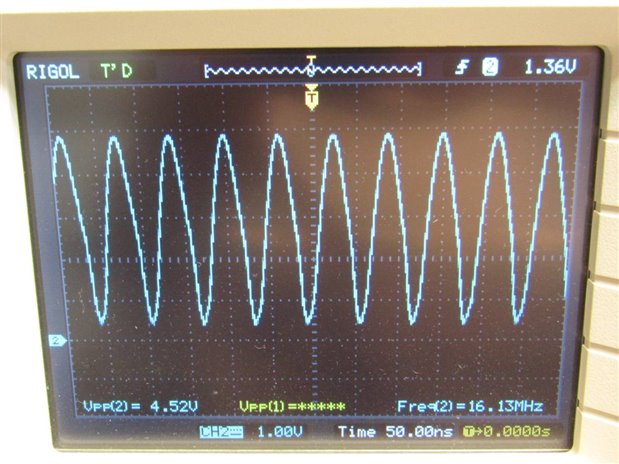 Above with a 12 MHz crystal. Below is a scope capture with a 16 MHz crystal. Circuit powered by a 3.3 V supply: