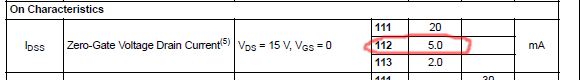 The datasheet is vague about the Idss value, it just gives a minimum of 5mA.
