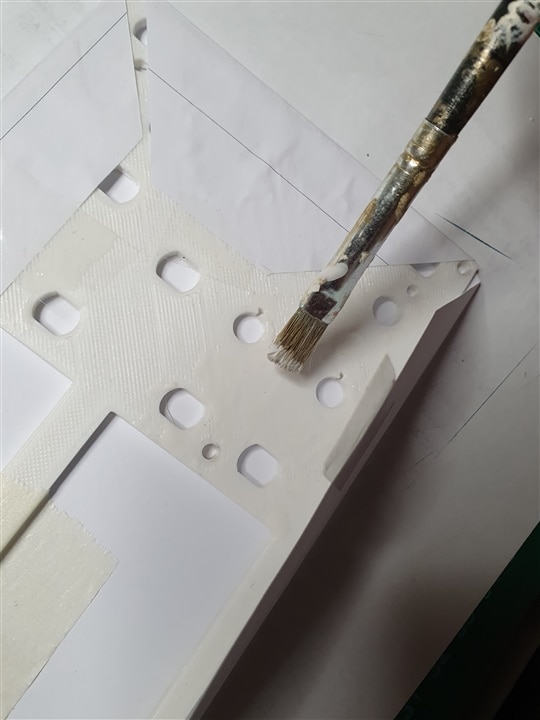 And while the wood glue is drying quite fast, I wanted to make sure it would not come off later on so I sandwiched the panel between two of the five PCB that I ordered and added pressure for a whole night: