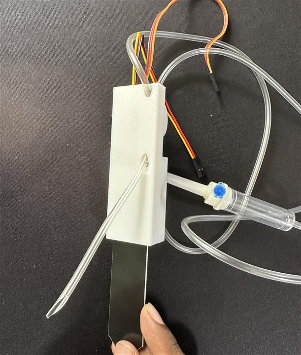 Finally you need to insert the water pipe under the servo pully for testing purpose. Inserting the water pipe is very easy. You just need to push the pipe through the top hole towards the the bottom hole. It will automatically follow the path.