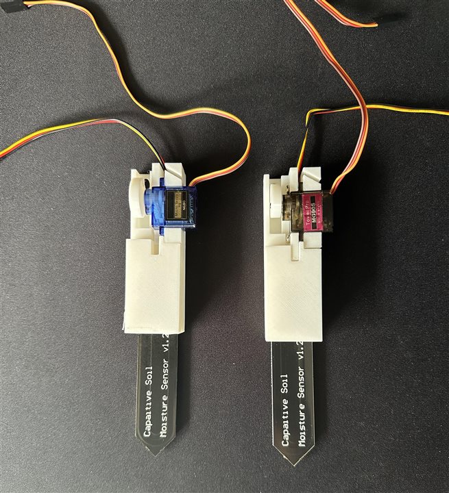 First you need to insert the capacitive soil moisture sensor to the 3D printed base as shown in the images below: