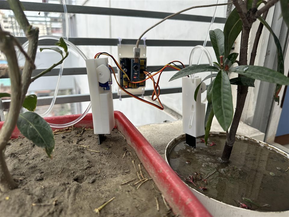 I make the system for my two plants and I used A0 and D8 for first sensor using and A1 and D9 for second sensor unit. Each plant pot needs a separate sensor unit for independently watering the plant.