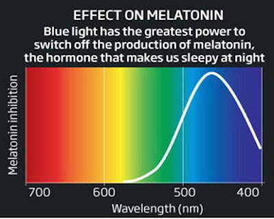 One of his points is the effect of the blue light on sleep. Melatonin helps trigger sleep in humans..Blue light has a very strong on melatonin inhibition.