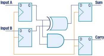 Figure 19a: Example Half Adder in a synchronous design (clock is shown in orange).